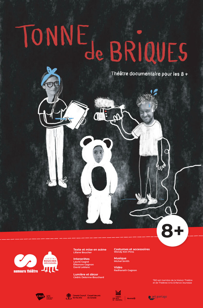 Quand Liliane propose à sa fille Éléonore de créer une pièce de théâtre en famille, elles sont toutes deux loin de s’imaginer les tempêtes que déclenchera la rencontre de leurs imaginaires. La vraie vie devient alors théâtre et la scène, un nouveau quotidien. À cheval entre théâtre documentaire et fiction, Tonne de briques est un terrain de jeu où l’on s’amuse à faire semblant pour vrai, tout en illustrant les chemins sinueux de la conception d’une œuvre théâtrale.